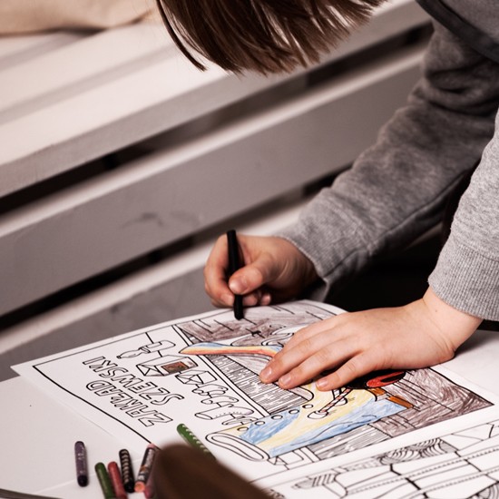 Duży format i grubszy papier pozwala użyć najróżniejszych narzędzi: kredek ołówkowych i świecowych, mazaków, farb...