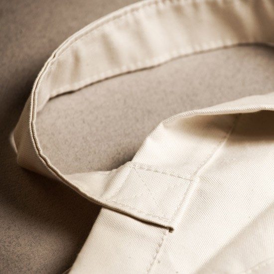 Torba z ekskluzywnej, grubej, bawełnianej surówki z krótkimi rączkami i długim uchwytem.